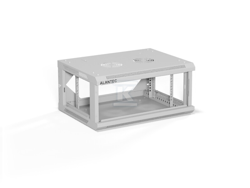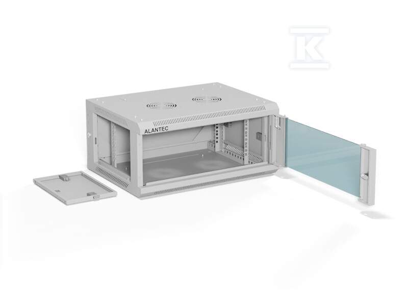 Шафа настінна 19" 4U 600x450, двері скляні одностулкові, задня стінка суцільна знімна, бокові панелі суцільні знімні з ключем, 4 балки, колір сірий, ALANTEC SW-4U-600-450-01-SA