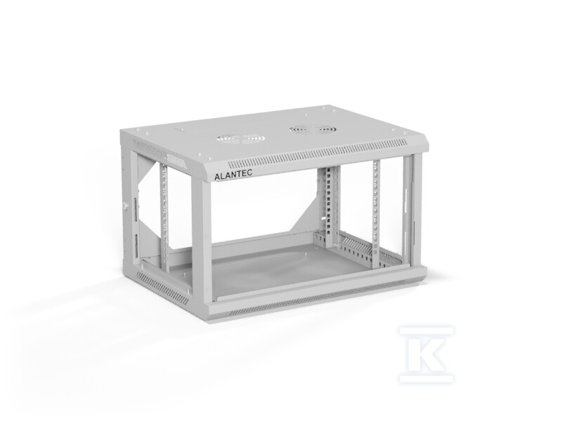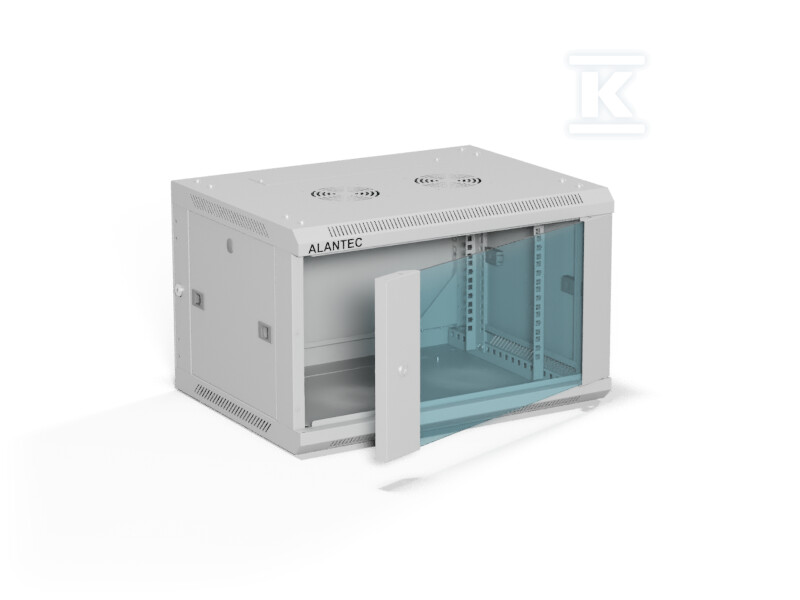 Шафа настінна 19" 6U 600x450, (опція двосекційна) двері скляні одностулкові, задня кришка повна демонтажна, бічні кришки повні демонтажні, що замикаються на ключ, 4 балки, колір сірий, ALANTEC SW-6U-600-450-01-SA