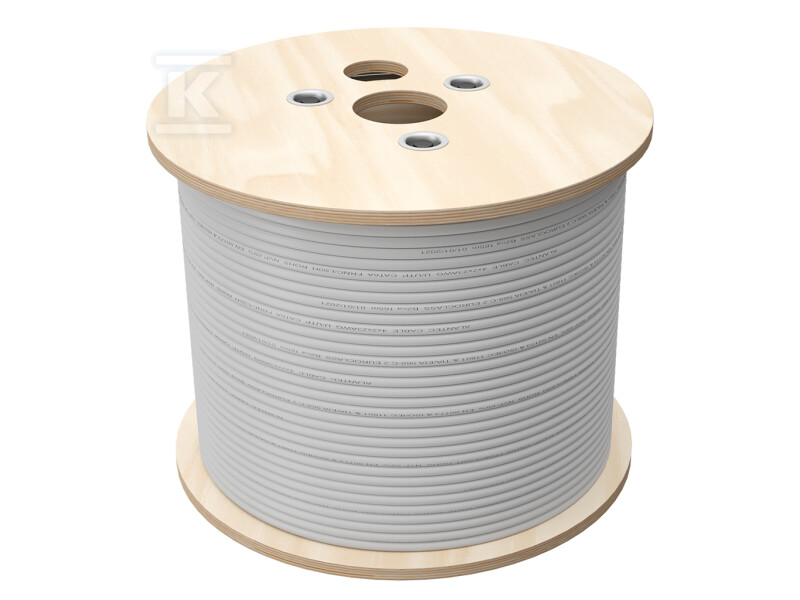 Кабель має мідні жили з перерізом 4x2x24 AWG, що гарантує відмінну провідність і мінімальні втрати сигналу. Конструкція з чотирма скрученими парами забезпечує стійкість до електромагнітних перешкод. Відповідає нормам ISO/IEC 11801 та ANSI/TIA-568, що підтверджує його відповідність міжнародним стандартам якості. Завдяки цьому можна бути впевненим у надійній роботі інсталяції протягом багатьох років – продукт підтримується 25-річною гарантією системною. Додатково, сертифікат INTERTEK ETL підтверджує суворі якісні тести, проведені незалежною лабораторією в США.