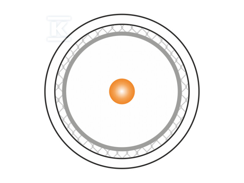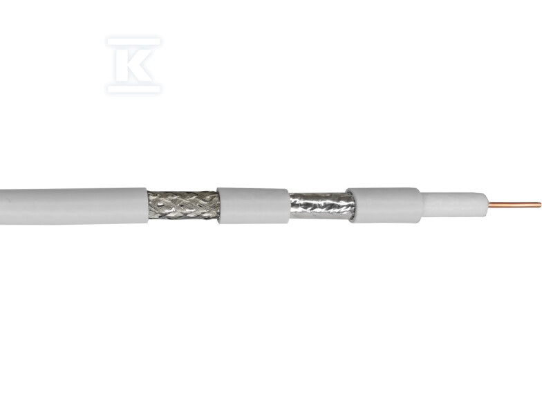 Серцевина кабелю виготовлена на 100% з міді діаметром 1,13 мм, що гарантує відмінні параметри згасання та стійкість до корозії. Діаметр діелектрика становить 4.8 мм, а потрійне екранування (фольга AL/PET/AL + обплетення алюмінієве + фольга AL/PET) класу A+ ефективно захищає від електромагнітних перешкод. Щільність обплетення становить 77%, що додатково збільшує ефективність екранування. Все це оточене міцним покриттям PVC, що відповідає нормі Eca щодо класифікації горючості.