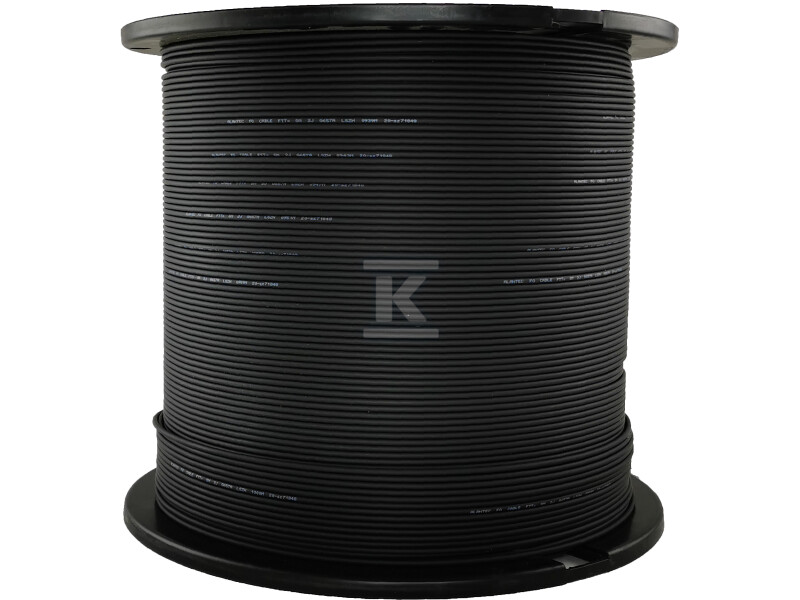Оптичний кабель OS2, ALANTEC FTTH, 9/125µm, SM 2J, 1000м, плоский, LSOH, чорний, посилений сталлю FOK-W2J-SM-A-C-1