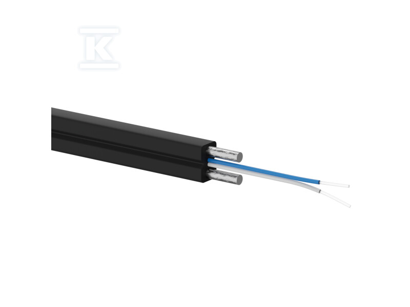 Кабель має 2 оптоволоконні волокна з діаметром 9/125µm, виготовлені в стандарті OS2 та сумісні зі стандартом G.657.A1. Сила натягу становить 80 N, а діапазон робочих температур – від -30°C до +70°C. Кабель доступний у відрізках 1000м і характеризується низьким загасанням сигналу – нижче 0,36 дБ/км при довжині хвилі 1310 нм і нижче 0,22 дБ/км при довжині хвилі 1550 нм. Клас вогнестійкості кабелю – Eca відповідно до норми EN 50575:2014 + A1:2016 та Постанови Європейського Парламенту і Ради (ЄС) № 305/2011 (CPR).
