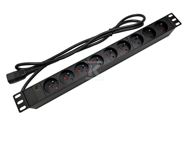 Роз'ємна панель 19" 230V - 9 розеток (типу E - CEE 7/5), з LED-індикатором, кабель 1,8м C14 ALANTEC PZ09U