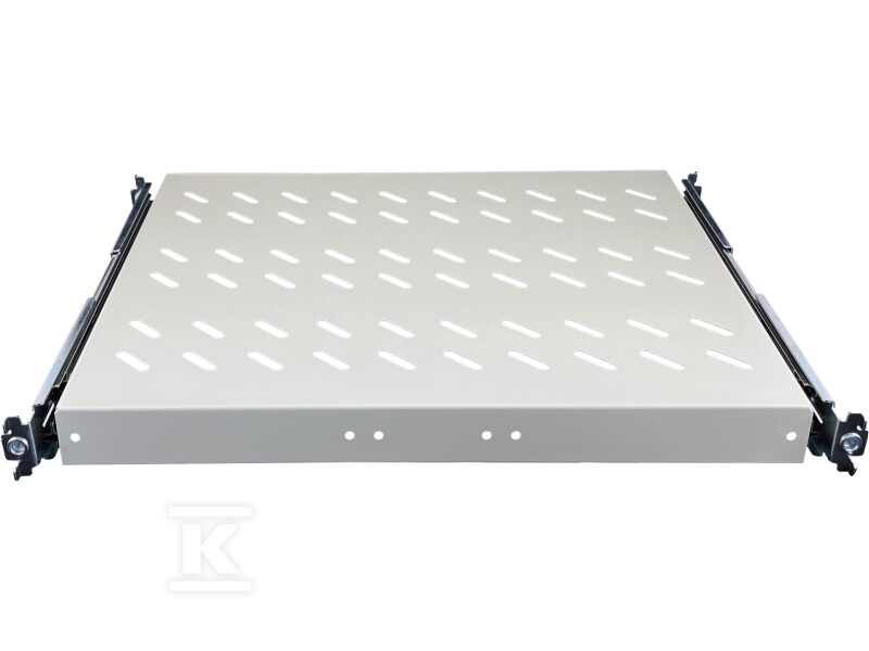 Міцна конструкція з перфорованого сталевого листа, пофарбованого порошковим покриттям, гарантує довговічність і стійкість до корозії. Механізм висування полегшує обслуговування та консервацію обладнання. Чотири точки кріплення дозволяють встановити в більшості стандартних шаф стійок 19". Перфорована конструкція забезпечує належний потік повітря, запобігаючи перегріву обладнання. Розміри – ширина 19", висота 1U, глибина 370 мм – забезпечують ідеальне припасування до стандартних шаф стійок. Максимальне навантаження до 25 кг дозволяє безпечно розмістити більшість телеінформаційних пристроїв.