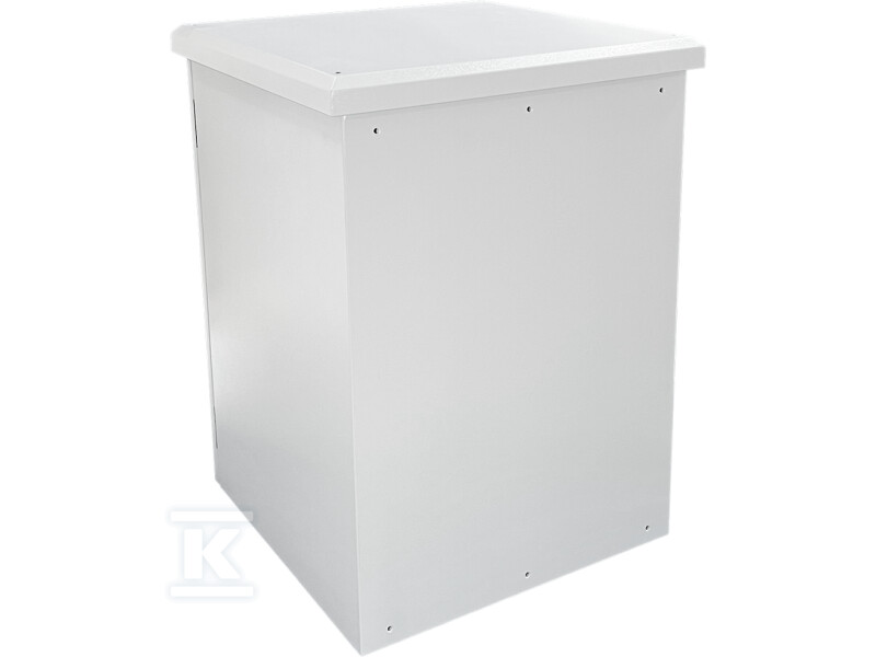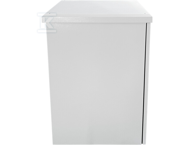 Для забезпечення оптимальної циркуляції повітря, двері шафи оснащені вентиляційними отворами з водонепроникним захистом та сітчастим фільтром. Порошкове покриття в сірому кольорі RAL7035 стійке до дії атмосферних факторів та механічних пошкоджень, забезпечуючи довготривалу естетику та захист від корозії. Шафа постачається в зібраному вигляді, готовому до негайного використання – без необхідності тривалого монтажу. Максимальне навантаження на шафу становить 60 кг при правильному кріпленні.