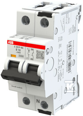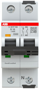 Автоматичний вимикач, 1P+N, характеристика B, 16A, 25kA, AC | S301P-B16NA 2CDS381103R0165