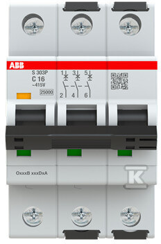 Автоматичний вимикач, 3P, характеристика C, 16A, 25kA, AC | S303P-C16 2CDS383001R0164