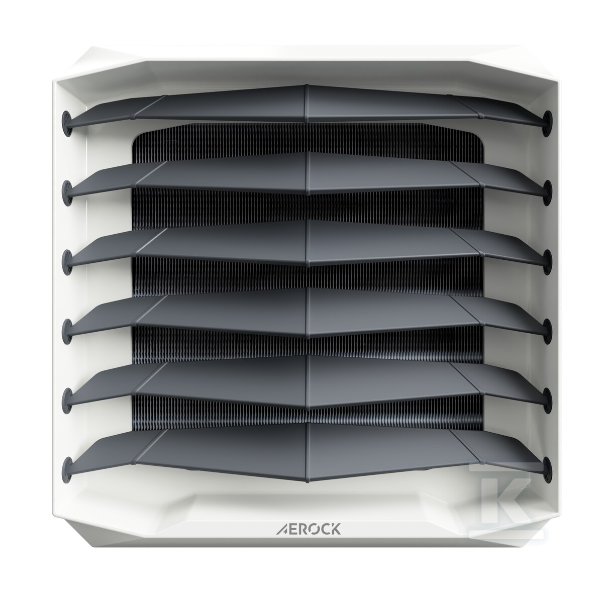 Нагрівач AEROCK MINI R3 AC вирізняється міцною рамою теплообмінника та корпусом, виготовленим з міцного ABS, стійкого до механічних пошкоджень і УФ-випромінювання. Корпус складається з двох частин – передньої кольору RAL 9016 та задньої кольору RAL 7024 – що надає пристрою естетичний вигляд. Приховані гайки-заклепки дозволяють монтувати пристрій у вертикальному або горизонтальному положенні, а додаткові клапани на колекторах полегшують обслуговування та видалення повітря з системи. Пристрій ідеально підходить для опалення промислових цехів, складів, майстерень, а також комерційних та сервісних об'єктів.