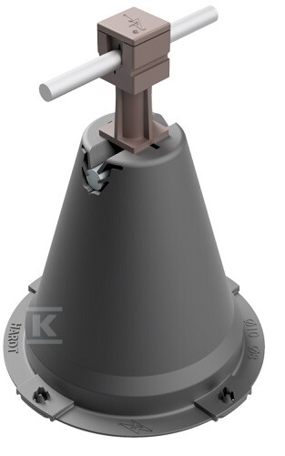 Утримувач складається з бетонної опори, заповненої морозостійким цементним розчином, та стійки, виготовленої з пластику (поліпропілену) висотою 10,5 см і коричневого кольору. Монтаж здійснюється шляхом приклеювання до покрівельного покриття за допомогою спеціальної клеючої маси – що мінімізує втручання в структуру даху та забезпечує герметичність з'єднання. Призначений для проводів діаметром fi8, а його конструкція дозволяє легко прокладати кабелі та проводи. Сталевий оцинкований гвинт M6x10 забезпечує додаткову безпеку.