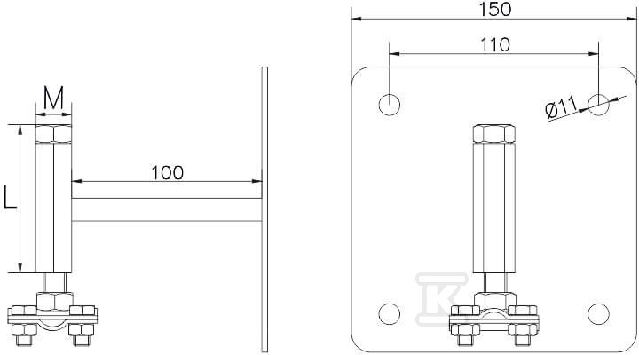 Цей сталевий бічний тримач M20, виготовлений з оцинкованої сталі, є надійним рішенням для монтажу елементів блискавкозахисту до плоских поверхонь. Ідеально підходить як для нових інсталяцій, так і для модернізації існуючих систем захисту від атмосферних розрядів. Різьба M20 довжиною 60 мм забезпечує стабільне та безпечне з'єднання.