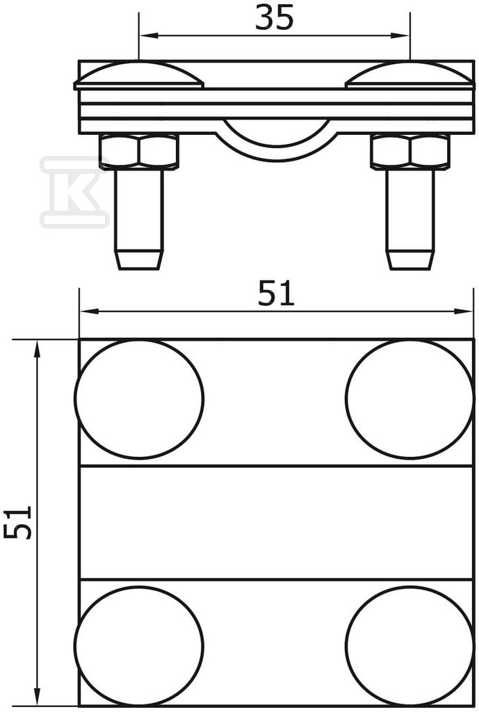 З'єднання виготовлено з алюмінію, а гвинти та гайки - зі нержавіючої сталі. Призначене для круглих проводів у діапазоні fi8/B до 30 мм, а кріпляться за допомогою гвинтів 4xM6x25.