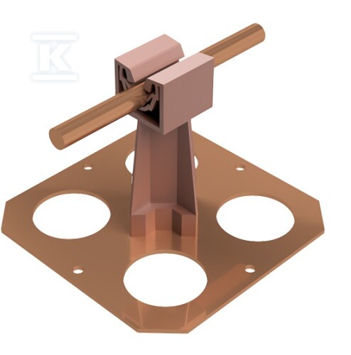 Цей кріплення, що приклеюється з металевою основою, оснащений стовпчиком цегляного кольору, є ключовим елементом у системах захисту від блискавки. Призначений для прокладання струмовідводів на дахах, покритих бляхою або папою, забезпечує безпечне та міцне кріплення провідників. Конструкція кріплення дозволяє легко монтувати та естетично адаптувати до покрівельного покриття.