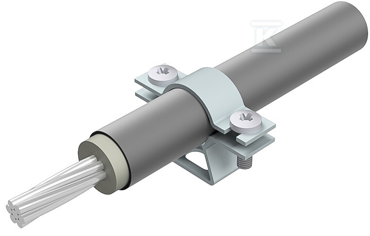 Виготовлений з електролітично цинкованої сталі, тримач гарантує високу стійкість до корозії, що перекладається на тривалий термін служби навіть у складних атмосферних умовах. Монтаж здійснюється за допомогою двох гвинтів M5x16 (оцинкована сталь), що забезпечує стабільне та надійне з'єднання. Діаметр проводу, для якого призначений тримач, становить від 17 до 23 мм – це універсальний діапазон, що підходить для більшості стандартних проводів.