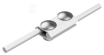 Це наскрізне з'єднання, виготовлене з алюмінію, призначене для надійного з'єднання круглих провідників діаметром 8 мм в установках заземлення. Його конструкція забезпечує безперервність ланцюга, гарантуючи ефективний захист від наслідків атмосферних розрядів. З'єднання особливо корисне там, де потрібна міцність і довговічність з'єднання, а також стійкість до корозії.