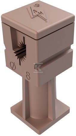 Ця стійка з пластику, в цегляному кольорі, є елементом системи захисту від блискавки, призначеним для прокладання дроту як на плоских, так і на похилих дахах. Її завданням є забезпечення безпечного та естетичного прокладання провідників від блискавки, мінімізація ризику пошкоджень та забезпечення ефективного захисту від атмосферних розрядів. Конструкція стійки дозволяє кріпити провід діаметром 5-8 мм.