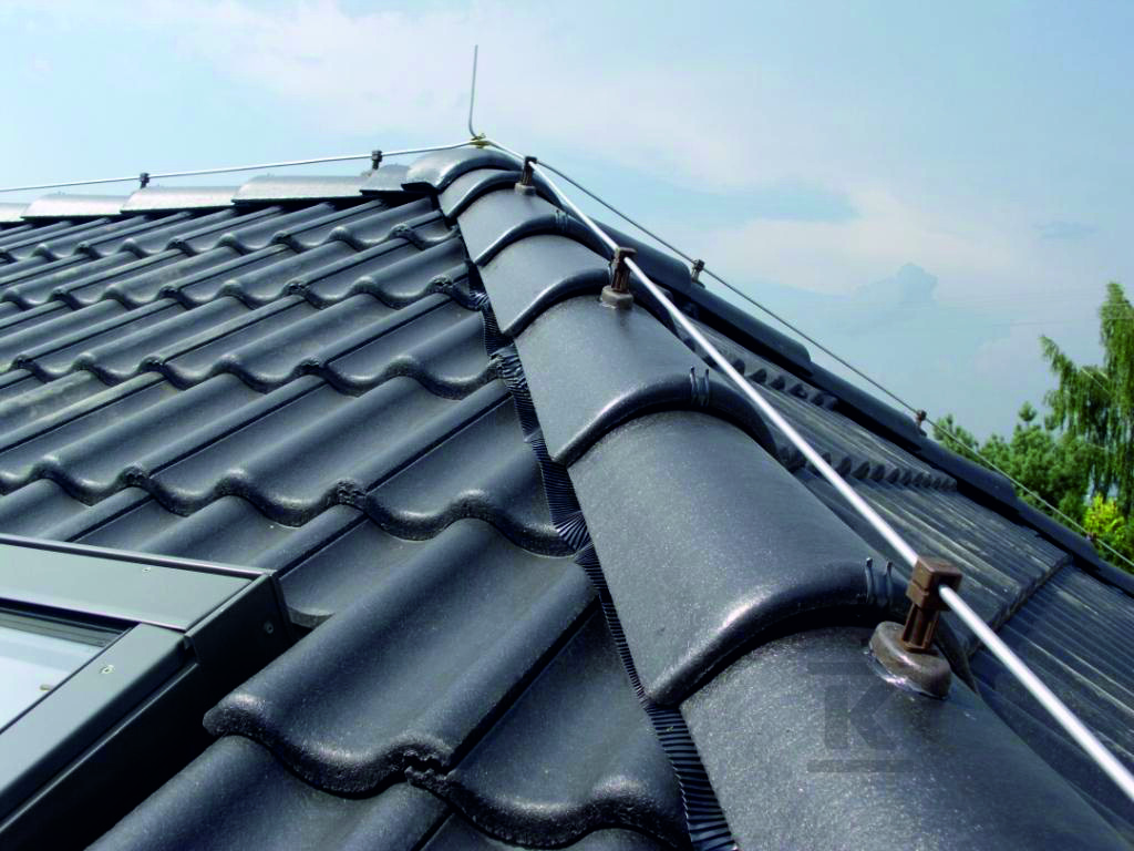 Цей стрижень з керамічною основою, виготовлений з міцного пластику, розроблений для безпечного та естетичного прокладання відвідних дротів по черепиці. Це ключовий елемент системи захисту від атмосферних розрядів, що забезпечує ефективний захист будівлі та її мешканців. Продукт призначений для використання з клеєм (кат. номер 29090), що забезпечує стабільне та довговічне кріплення.