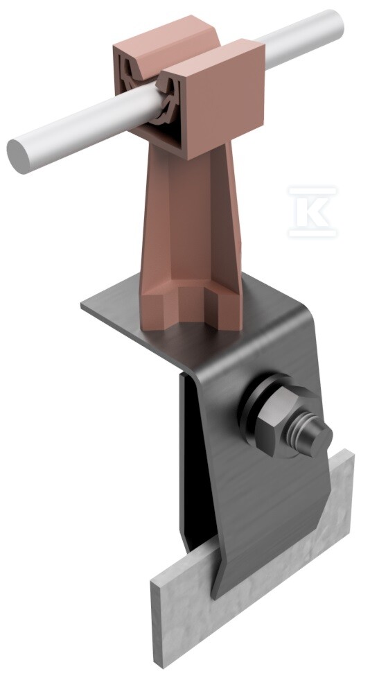 Цей утримувач зі стійкою на фельц є надійним елементом системи кріплення проводів на дахах, покритих бляхою, як укладених вздовж, так і вширш фельцу. Конструкція поєднує в собі міцність нержавіючої сталі з практичністю пластику, що забезпечує стійкість до корозії та довготривале використання. Цегляний колір стійки гармонійно вписується в естетику даху, не привертаючи до себе уваги.