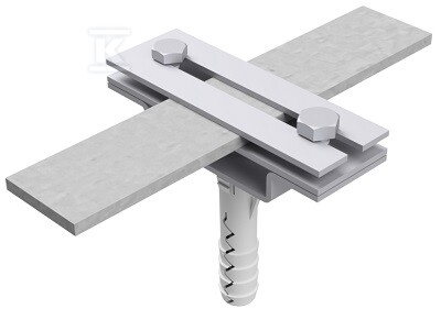 Тримач призначений для прокладання смуги заземлення шириною до 50мм. У комплекті входять два болти M6x20 з нержавіючої сталі та гайки, що полегшує монтаж. Продукт призначений для використання з муфтою Ø12x60mm (кат. номер AH29050), що додатково збільшує стабільність та безпеку інсталяції. З'єднувальний/гвинтовий монтаж забезпечує легкість встановлення та демонтажу за потреби. Цей тримач знайде застосування як у нових інсталяціях, так і при модернізації існуючих систем блискавкозахисту.