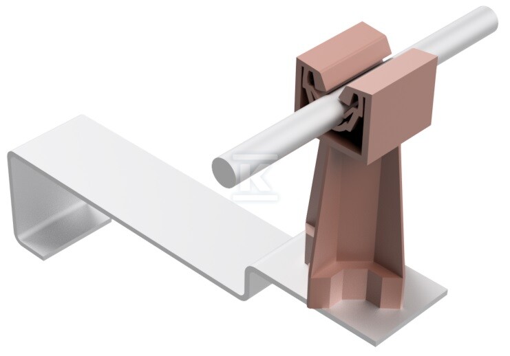Цей даховий кронштейн є надійним рішенням для безпечного прокладання провідників блискавковідводів на дахах, покритих черепицею, як укладених горизонтально, так і вертикально. Конструкція поєднує в собі міцність алюмінію та пластику, що забезпечує стійкість до атмосферних впливів і тривалу експлуатацію. Стійки цеглястого кольору непомітно інтегруються з більшістю покрівельних матеріалів.