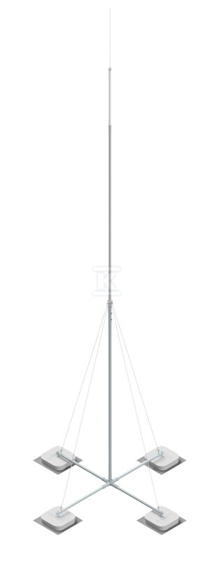 Ця самостійна щогла розрядника, висотою 8000 мм, призначена для захисту будівель та обладнання від наслідків удару блискавки. Особливо корисна в ситуаціях, коли неможливо забезпечити належну ізоляційну відстань від елементів даху або електричних установок. Конструкція на чотириногу забезпечує стабільність та ефективне відведення струму до заземлення.