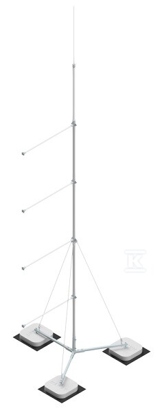 Щогла виготовлена з високоякісного алюмінію, скловолокна та сталі, що піддалася електролітичному цинкуванню, що забезпечує її довговічність та стійкість до корозії. Додатково, застосування бетонних обтяжувачів (3x24 кг) забезпечує стабільність конструкції навіть у вітровій зоні I – вони не потребують склеювання з покрівлею, що полегшує монтаж та мінімізує ризик пошкодження даху. Бічні ізолятори (4 шт.) підтримують безпечну відстань від захищених елементів.