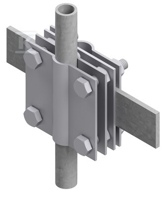 Це з'єднувач заземлення, виготовлений з кислотостійкої нержавіючої сталі, забезпечує міцне та надійне з'єднання круглих та плоских провідників в системах заземлення. Він ідеально підходить як для нових інсталяцій, так і для модернізації існуючих систем захисту від блискавки. Конструкція з чотирма пластинами гарантує стабільність та ефективність з'єднання, а матеріал – стійкість до корозії та тривалу експлуатацію у складних атмосферних умовах.