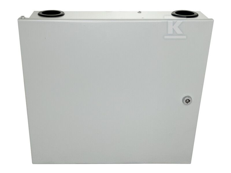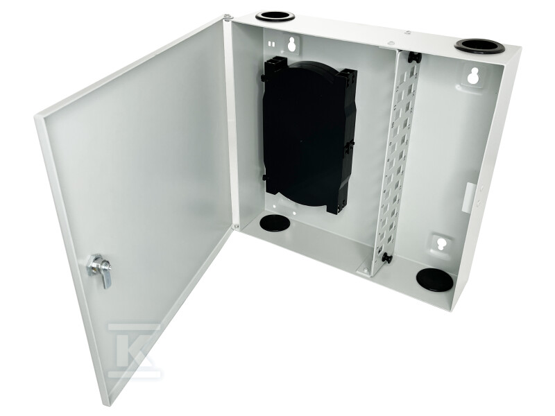 Оптоволоконна розподільна коробка дозволяє організувати оптичні волокна. Він оснащений 4 вхідними / вихідними портами діаметром 30 мм кожен. Цей тип з’єднувальної коробки використовується для захисту та розгалуження волоконно-оптичних кабелів. Це розподільна коробка, призначена для установки всередині приміщень. Він розроблений таким чином, що його встановлення є простим і ефективним, і в той же час пропонує перевірену систему оптоволоконного керування. Адаптерний кронштейн дозволяє встановити 24 адаптери SC Simplex або LC Duplex. Організація оптоволокна в розподільній коробці можлива завдяки двом оптоволоконним лоткам. (Один лоток для оптоволокна з номінальною місткістю 12 зрощень). Розподільний щит виготовлений з холоднокатаної сталі з порошковим покриттям білого кольору. Всі металеві