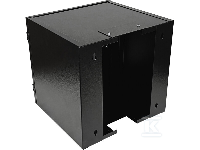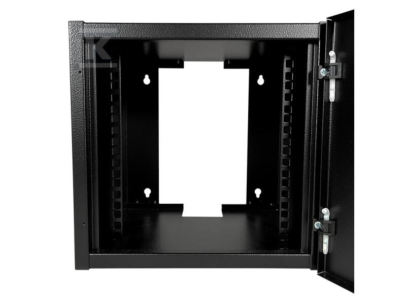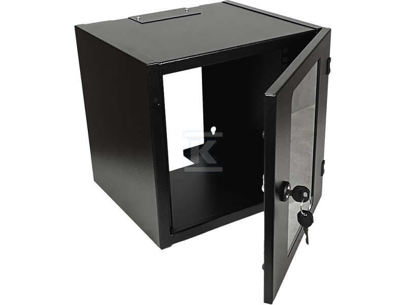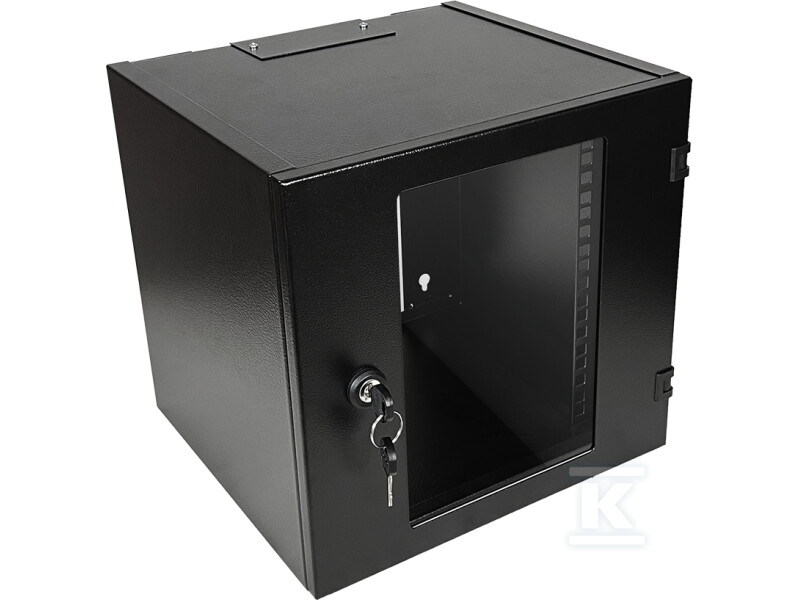 10-дюймова загальна шафа, висотою 6U і глибиною 300 мм, зі скляними дверцятами. Бічні кришки фіксуються. Продукт призначений в основному для невеликих ІКТ-мереж.