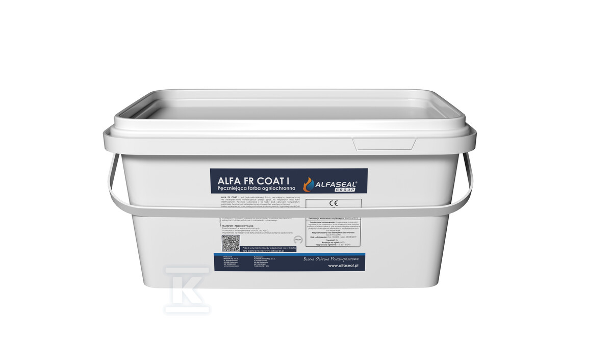 ALFA FR COAT I – це однокомпонентна, пінорозширювальна вогнезахисна фарба, створена для захисту інсталяційних переходів у будівлях. Її ключовою особливістю є створення міцного захисного шару під впливом високої температури, що забезпечує вогнестійкість до EI 240. Це ідеальне рішення як для професійних монтажників, так і для власників об'єктів, які надають пріоритет пожежній безпеці.