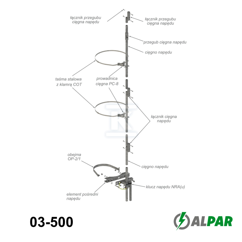 Ручний привід для з'єднувача без заземлення, кріплення над лінією, обертальний рух NRA E-10,5 кВт.I 03-500