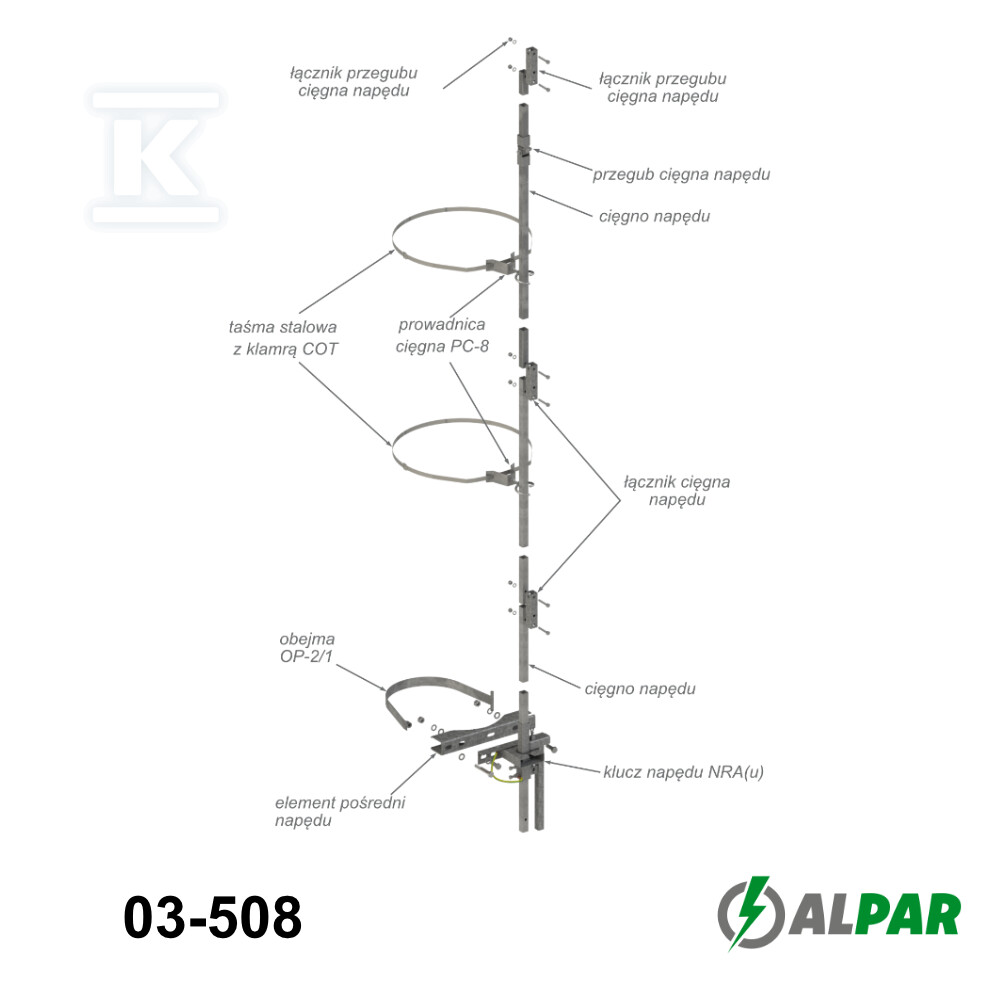 Ручний привід для з'єднувача без заземлення, кріплення над лінією, обертальний рух NRA E-13,5 в.I 03-508