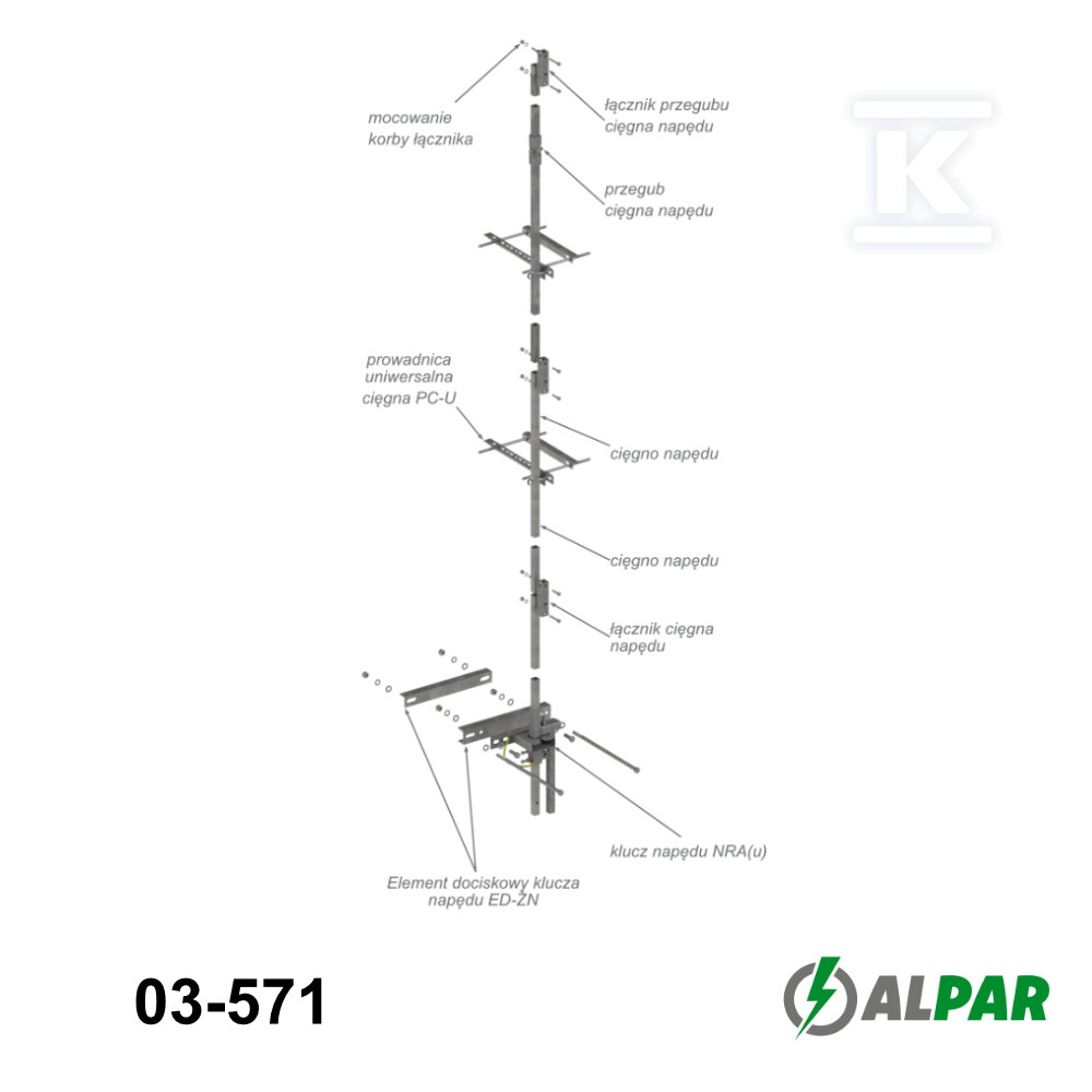 Ручний привід для з'єднувача без заземлення, кріплення під лінією, обертальний рух NRA BSW-12 в.II 03-571