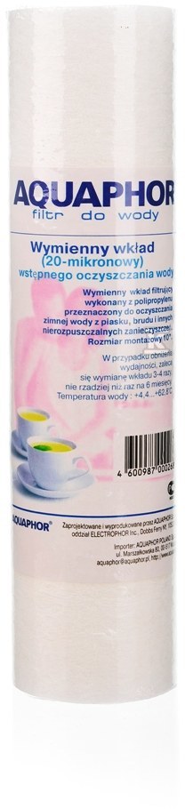 Цей поліпропіленовий картридж Aquaphor є основним елементом попереднього очищення води, який ефективно усуває механічні забруднення. Його завданням є захист більш просунутих фільтрів та всієї інсталяції від пошкоджень, спричинених іржею, піском, мулом, опадами та іншими суспензіями. Це просте рішення подовжує термін служби системи фільтрації та забезпечує стабільну якість води.