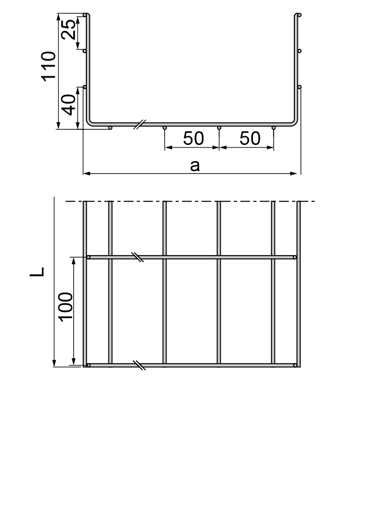 Прокладка кабельної траси. Електрооцинкований дріт На замовлення: F- гарячеоцинкований дріт PN-EN ISO 1461: 2011 E- кислотостійкий дріт L- стандартне кольорове лакування RAL.