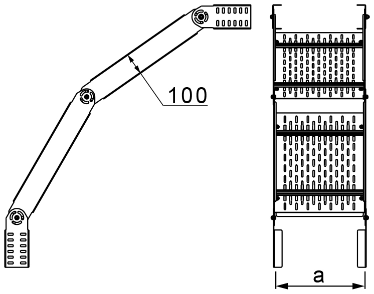 Зміна напрямку траси кабелю Повне регулювання кута з блокуванням. Sendzimir-оцинкована сталь PN-EN 10346: 2015-09 Під замовлення: F- гарячеоцинкована сталь PN-EN ISO 1461: 2011 E- кислотостійка сталь L- фарбування в стандартний колір RAL Можливість виготовлення дуги з будь-який внутрішній радіус, налаштований на мінімальний радіус вигину кабелів.