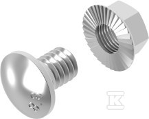 Комплект гвинта з грибоподібною головкою та притискної гайки з насічками, призначений для з'єднання елементів систем кабельних трас. Цей набір забезпечує міцне та естетичне кріплення, яке є важливим як під час монтажу, так і подальшої експлуатації. Виготовлений зі сталі нержавіючої (1.4301) гарантує стійкість до корозії та тривале використання, навіть у складних умовах навколишнього середовища.