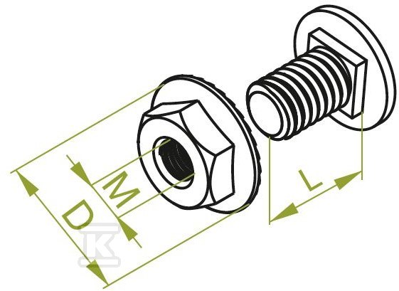 Грубий гвинт з напівкруглою головкою + зубчаста гайка SGKM8x16 654041