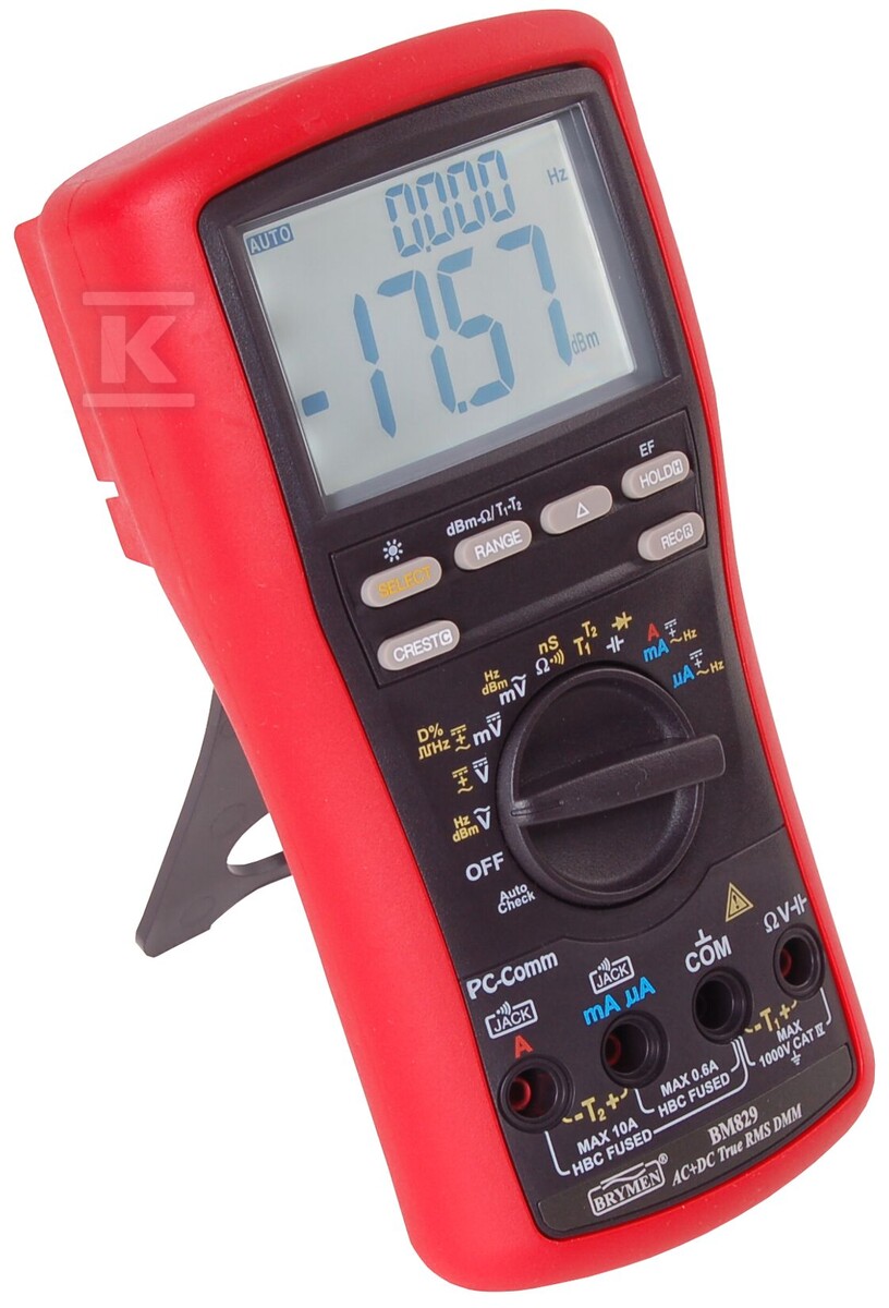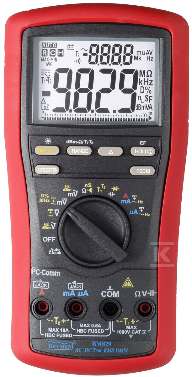 Завдяки вбудованому порту USB та сумісності з опціональним набором комунікацій KIT BRUA-86X, дані можна легко передавати на ПК для подальшого аналізу або створення сервісних звітів. Мультиметр також підтримує вимірювання ємності до 25 мФ, провідності, а також тестування діодів та цілісності ланцюга, роблячи його універсальним інструментом як для електрика, так і для електроніка. Варто зазначити, що попри таку багату функціональність, пристрій зберігає простоту використання завдяки автоматичному вибору діапазону (Auto Ranging). Поєднання професійного класу безпеки з інтуїтивним інтерфейсом робить BM829s інструментом, готовим до роботи як у сервісній майстерні, так і безпосередньо на будівельному майданчику чи виробничому цеху.