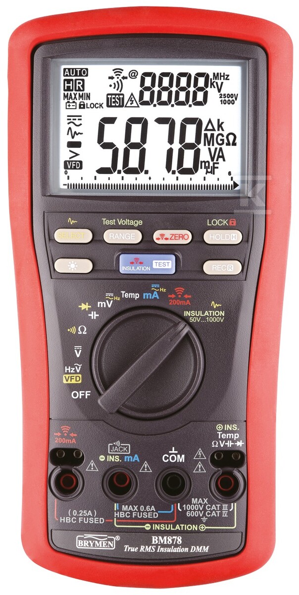 Цифровий мультиметр з вимірюванням опору ізоляції BM878 TRMS VFD, T, Riso 50V-1000V Earth Cont. 200mA 102133