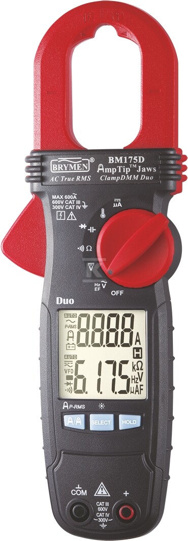Кліщовий мультиметр BM175D — це пристрій, розроблений для точної діагностики електричних установок, де вирішальне значення має не лише широкий діапазон вимірювань, а й їхня надійність у складних умовах. Пристрій виділяється подвійним підсвічуваним дисплеєм LCD, який дозволяє одночасно зчитувати значення напруги та струму без необхідності перемикання функцій — це економить час монтажника та забезпечує більшу наочність даних для кінцевого користувача. Серцем системи є технологія True RMS, яка гарантує правильні показання навіть у ланцюгах зі спотвореними хвилями, що є безцінним при роботі з сучасними енергетично-електронними споживачами.