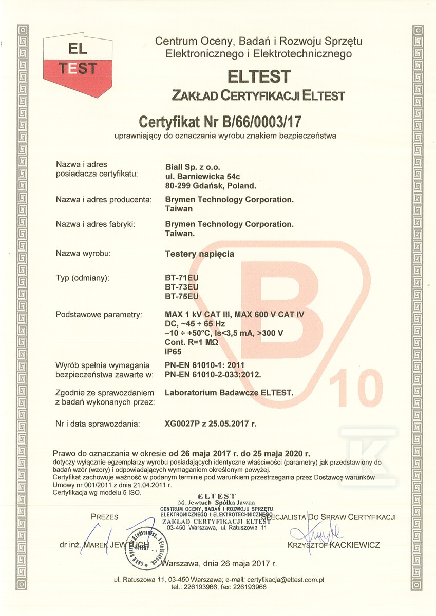 Вимогливе середовище роботи, таке як розподільчі щити або промислові установки, вимагає інструментів, які не лише покажуть результат, а й насамперед забезпечать безпеку користувача. Цей тестер напруги розроблено для роботи в категоріях CAT III 1000V та CAT IV 600V, що робить його придатним інструментом для вимірювань у низьковольтних та середньонапругових установках. Відповідність стандарту EN61243-3:2014 (видання 3) є гарантією того, що пристрій відповідає суворим вимогам безпеки для індикаторів напруги. Завдяки ступеню захисту IP65, прилад стійкий до пилу та бризок, що дозволяє впевнено працювати навіть у складних будівельних або майстерних умовах.