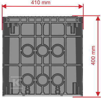 Шахта SK-1 Mikro характеризується компактними зовнішніми розмірами – 410 x 220 мм при висоті 400 мм. Внутрішні розміри становлять 140 x 330 мм. Завдяки численним місцям для введення (діаметри Ø10, Ø15, Ø50, Ø110 мм) введення труб та кабелів є надзвичайно простим – не потребує свердління або мурування. Кришка, виготовлена з поліпропілену, відповідає стандарту EN 124 та має клас навантаження B125, гарантуючи безпеку використання в різних умовах. Вона захищена засувом, який керується за допомогою шестигранного ключа. Шахта має міцне дно та відсутність захисної рамки країв.