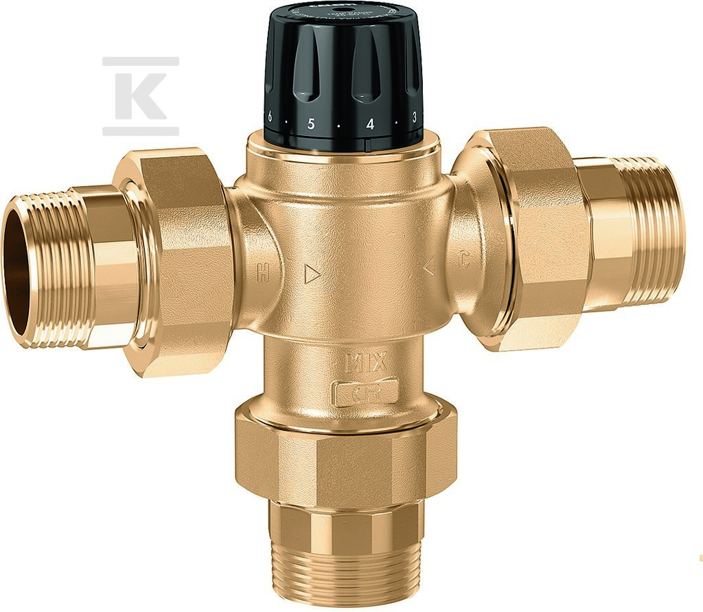 Регульований термостатичний змішувальний клапан для централізованих систем. Корпус виготовлений зі сплаву, стійкого до вимивання цинку 1 1/4 35÷65°C 523170