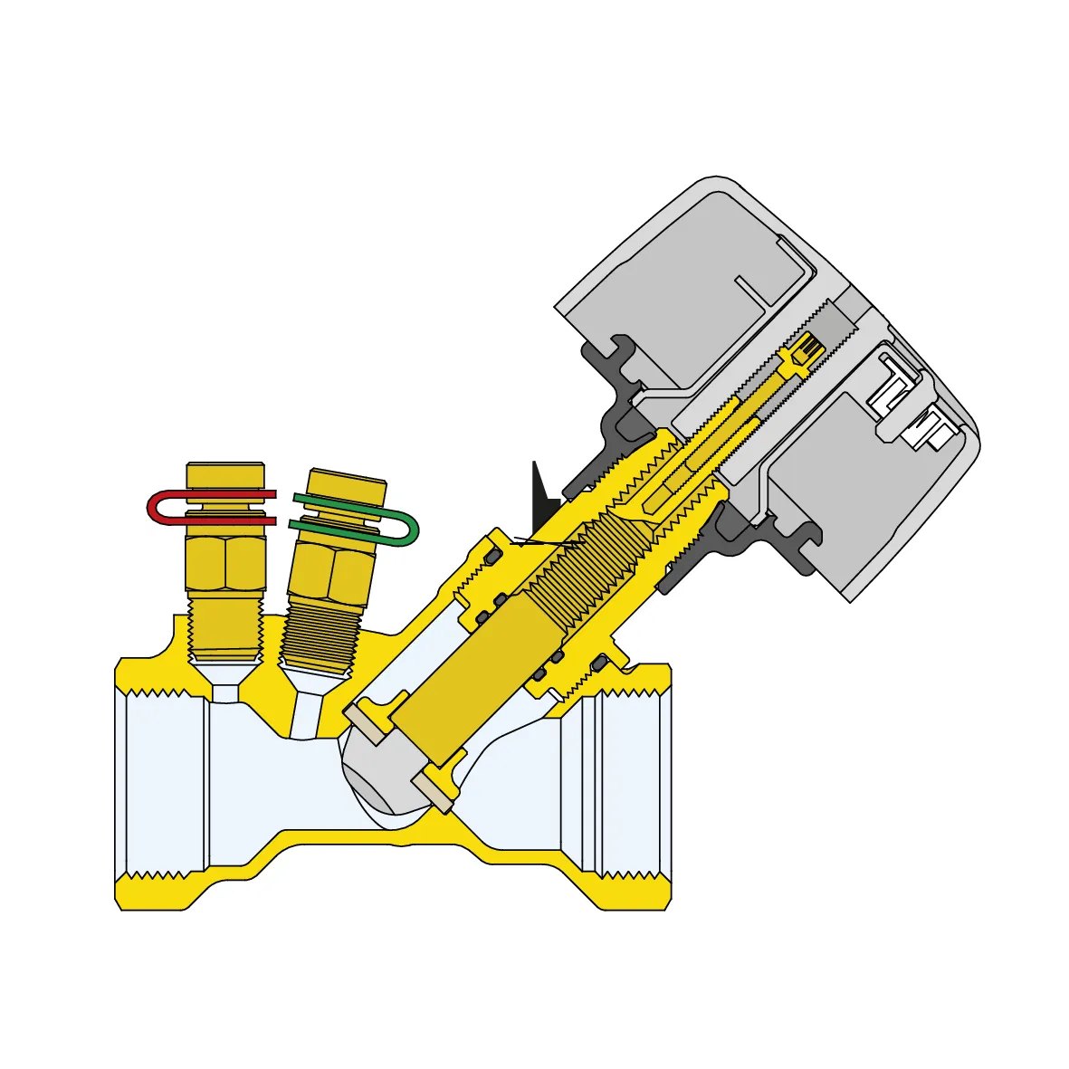Клапан виготовлений з високоякісного сплаву, стійкого до цинкування, що гарантує його тривалу експлуатацію навіть у складних умовах. Закриваючий елемент з нержавіючої сталі забезпечує герметичність і надійність роботи. У комплекті є вимірювальні штуцери, які полегшують точне налаштування потоку. Його можна використовувати в установках з гліколем концентрацією до 50%, що розширює сферу його застосування. Завдяки цьому клапан підійде як для традиційних систем опалення, так і для установок, що використовують відновлювані джерела енергії.