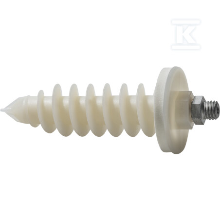 Самоотвірний анкер з нейлону, стійкий до старіння та атмосферних умов, вкручується без свердління в штукатурку ETICS до 7 mm товщини. Ущільнювач з клітковинної гуми, вже встановлений, створює герметичну бар’єр — продукт успішно пройшов тест герметичності на сильний дощ згідно DIN EN 1027 методом A. Різьба підключення M10 виготовлена зі цинкованої сталі або сталі A2, що забезпечує стійкість до корозії при атмосферному впливі.