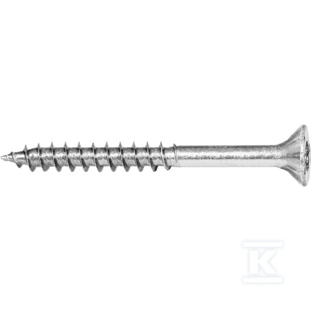 Під головкою розташовані внутрішні фрезерні кишені — ідеальні для монтажу металевої фурнітури. Вони не залишають стружки на поверхні, дозволяють чисте та глибоке заглиблення без необхідності попереднього свердління. Гвинт оцинкований електролітичним способом — стійкий до корозії, але не призначений для вологих або зовнішніх умов без додаткового захисту.