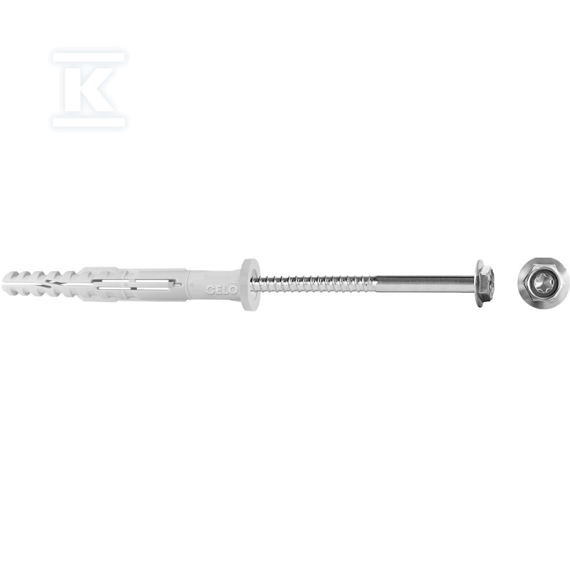 Внутрішні поперечні виступи забезпечують раннє та рівномірне розширення при закручуванні — завдяки цьому дюбель створює надійне з'єднання навіть у пористих або неоднорідних матеріалах. Гніздо TX на гвинті дозволяє закручувати його інструментом типу Torx, що забезпечує контроль над крутним моментом та уникнення пошкодження головки.