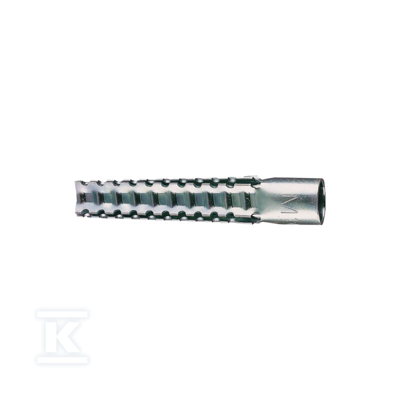 Металева гільза 8x60 мм MSD призначена для випадків, коли пластикові дюбелі заборонені або не відповідають нормам — наприклад, у газових системах згідно з TRGI 3.3.7.2. Її конструкція з оцинкованої сталі та зубчаста поверхня забезпечують надійне зчеплення в бетоні, повній цеглі та камені, навіть при циклічних навантаженнях чи вібраціях.