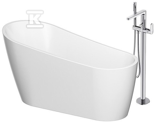 Цей набір поєднує в собі функціональність і сучасний дизайн. Ванна окремостояча Zen Oval розміром 167 x 72 см, виготовлена з високоякісного акрилу, є пропозицією для тих, хто цінує релакс у комфортних умовах. Її овальна форма та сніжно-білий колір впишуться в інтер'єри ванних кімнат, витримані в різних стилях – від мінімалістичного до класичного. До набору додається змішувач окремостоячий Inverto хром, який ідеально доповнює вигляд ванни та забезпечує зручне використання.