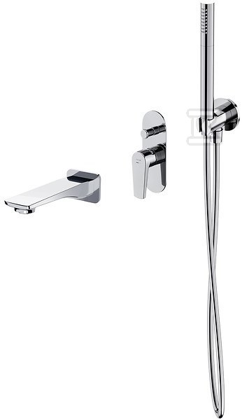 Комплект B730 прихований змішувач для ванни та душу + душовий набір з підключенням + вилив Moduo хром Wir S952-040